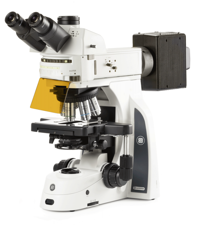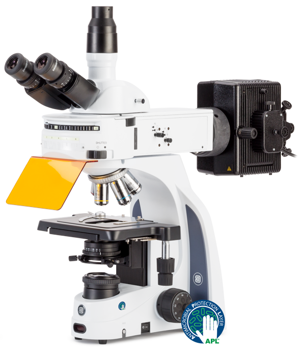 The fluorescence attachment of the Achios-X Observer™ is equipped with a 4-positions rotating mechanism that can be used to select between any of the 3 filter sets and brightfield (transmitted light). It is supplied with 3 dedicated LED sources to match the supplied fluorescence long pass filter sets for B, G and UV excitation