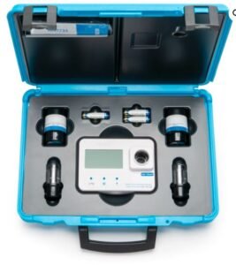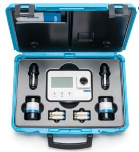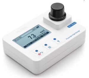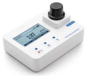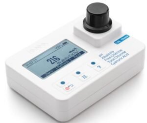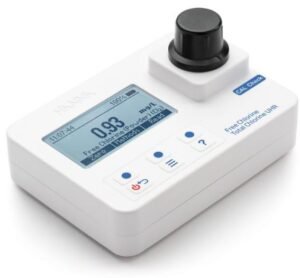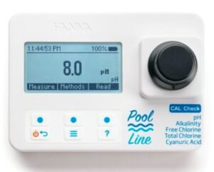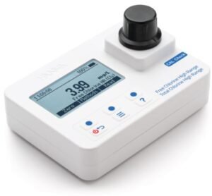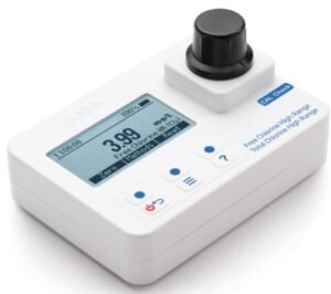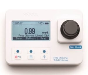 Chlorine is a common chemical used by many due to is disinfection properties. Free chlorine can exist in two forms and which form is present is based on the pH. At pH less than 7.6 the predominate form is hypochlorous acid (HOCl) while at pH greater than 7.6 the hypochlorite (OCl–) form becomes predominate. This is very important when it comes to preventing biological growth in water or keeping a swimming pool safe since hypochlorous acid is 100 times more effective as a sanitizer. Total chlorine represents both the free chlorine and combined chlorine present. Combined chlorine is the chlorine bound to nitrogen substances such as ammonia. In swimming pools combined chlorine that we can smell and is irritating to the eyes. The free chlorine measurement is subtracted from the total chlorine measurement in order to know how much combined chlorine is present. HI97104 is designed to measure swimming pool key water quality paramters. These parameters, in addition to chlorine, are pH, alkalinity, and cyanuric acid.