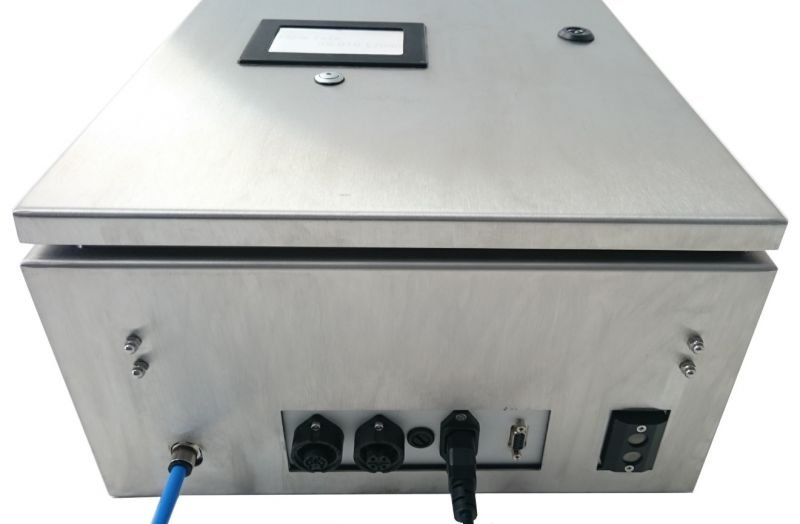 The device features an IP65-rated, easily decontaminated stainless steel housing that can be mounted either on a wall or on a trolley. The air inlet, a KF/DN16 connection, is located at the top of the housing. This design minimizes separation losses.
